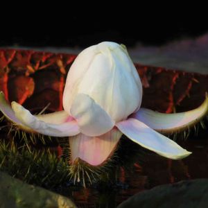 久々の植物公園。 オオオニバスが強風の中で咲きだしています。 なかなかこちらを向いてはくれません。 翌朝まで咲いててくれないかな?