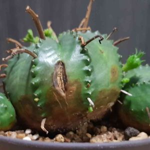 新入りの ・ユーフォルビア バリダ (多分この小ささで、この花柄の多さはスーパーバリダ?) ・スルコレブチア ラウシー 夏の新入りは蒸れそうなので、置き場所と水遣りに注意注意💦