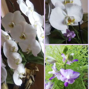 こんにちは(*ˊᵕˋ*) 胡蝶蘭(ホワイトジュエル) 先日オープンした店の㊗️🎉祝い品💐 半分咲き過ぎてますが… 育てる方にプレゼントしてました🎁 もちろん頂き(•ᴗ•; ) ↗️↘️自宅のミニ胡蝶蘭(サマーローズ)と大きさ比べ🤍💜