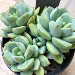 グラプトべリア属 「ティテュバンス」 グラプトべリアとは、グラプトペタルム属とエケベリア属の交配種です。 エケベリア属のようにロゼット型に葉を広げ、かつグラプトペタルム属のように茎が長く伸びる種類が多いようです🌱 このティテュバンスは、とにかく丈夫で、子株がぽんぽこ増えてきます(*^_^*) ちなみに、同じグラプトべリア属の中に「白牡丹」というものがあるんですが、その別名が「ティテュバンス」らしいです。 白牡丹とうちのティテュバンスを見比べてみましたが...そこまで似ていないと思うのですが、同じなんですかね?^^; 子株がたくさん増えたので、もう少し暖かくなったら早く分けてあげたいな〜(^ ^)