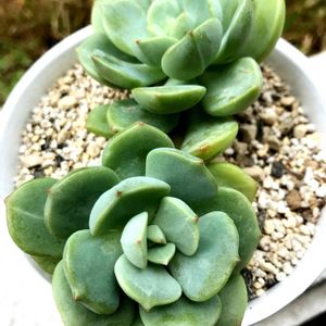グラプトベリア 左 ティテュバンス 右 白牡丹 白牡丹の別名がティテュバンスみたいだけど、並べたら別物💦