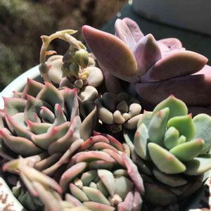 こんにちは🤗💕 久しぶりに水やり&多肉ごとしたー😆✌🏻 下の写真は植え替え待ちの1部。昨日、土買いに行ったらいつものがなかったよ💦 私が使ってる土はプロトリーフの粒状かる〜い培養土ってやつなんだけど、ある時とない時があるんだ🌀でも使いやすくて気に入ってるんだ。 スカスカ伸び伸びシワシワ🤪トリカラーって思ったより枝っぽくなるのね🤔早く植え替えたいな💪🏻 あ!そしてやっぱり!爪蓮華と子持ち蓮華が春感じてたよ😍❤️開いてきてた❤️ みなさんの所も目覚めてきたかなぁ❓
