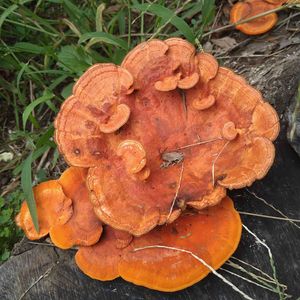 9月6日に投稿した ヒイロタケ🍄 昨日見たら増殖していました マリーゴールド色💛