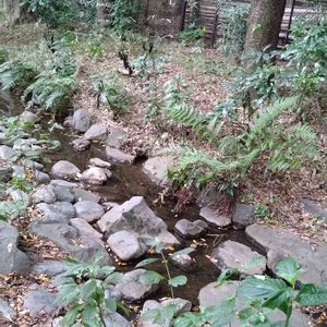せきれいの道にあるせせらぎ 雨が降るとこちらから水を排水しています この水は道路の下を横切り又せきれいの道のせせらぎに通じています(たぶん) 昨日は出ていませんでした ねこたんぽさんの 🏷石の日参加します
