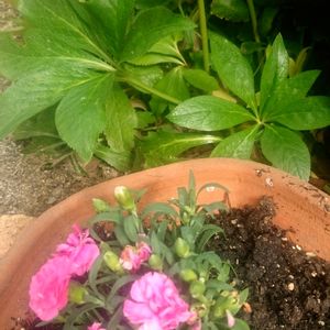 ポットカーネーション プリティローズ 四季咲き性の多年草だそうです。 カーネーションを育てるのが苦手で、いつも気がつくとカサカサで枯れてしまうんですよね🤔 でも今年のこの株はポツポツと少ないながら花を咲かせ続けています✨