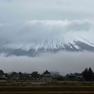 今日の富士山 、雪が降っていて、 麓は雨で3時頃から晴れました (2023.11.17 12:10 小山町古城より)