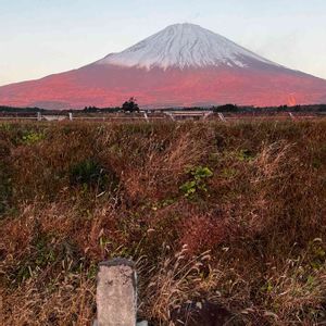 今朝の富士山と麓の紅葉や花たち (2023.11.20 6;14〜6:44 小山町、御殿場市)