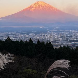 今朝の富士山と、我が家の見える景色 (202311.22 6:25〜7:00 足柄峠下より)