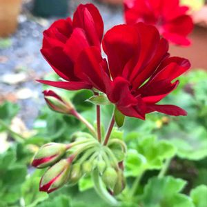 鮮やか赤で おめかししてる のは紅葉葉のゼラニウム
