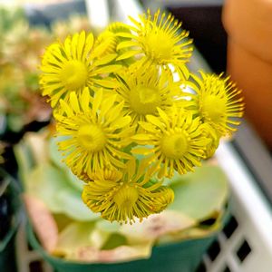 エリザベス(グリーノビア・アエオニウム) ここ2.3日温かくて一気に咲き始めました🌼 花芽がニョキニョキ伸びてきて先端が太くなって蕾が出来始めたときはキモかったけど、 今はまぁ〜なんて可愛いんでしょう😄💕 交配してみますね!