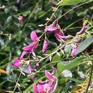 いつも通る歩道の反対側、車道の脇の植え込みの中に垂れるような枝に花を付けていたミヤギノハギ。 今まで全然気がつかなかった💦 私の後ろを車が通る度にユラユラ揺れるのを我慢してパチリ❗️