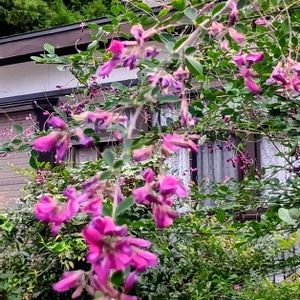 おはようございます☔️ お寺の山門の前に咲いていました。 紅白です。 白い方は、シロバナハギ マメ科ハギ属の落葉低木 ミヤギノハギの変種 純白の蝶形花を咲かせる。 日本原産 花期7〜9月 ピンクの方は、 🔍でヤマハギと出たのですが ちょっと違う様な? ミヤギノハギと教えて頂きました。 塩船観音寺