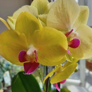 こんにちは😊 今日はカラッとした晴れ間☀木陰では風も涼しく感じます 日も短くなり夜は虫の音も…🦗 今日のお花🌸コチョウラン🌸 家のミディ胡蝶蘭です 🩷ミニ胡蝶蘭 ファレノ 💛ミディ胡蝶蘭 キロロ 🤍ミディ胡蝶蘭 名前分からず 今年は既にお花が終わってますが、白の胡蝶蘭が不調でダメかもです😢