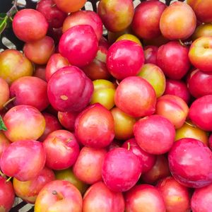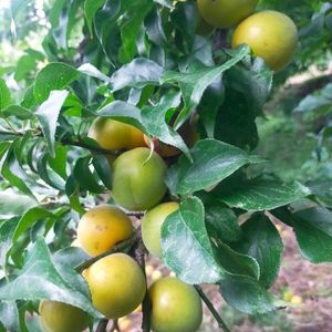 昨日の強風で 収穫🧺前のスモモが落下しているので、残りも収穫! ③ 3枚目は晩生のスモモ サンタローザまだ青いのに落下!😭