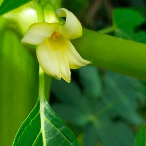 今年 初めて植えた パパイヤの🏵️花です。 地味な蕊なので 実🫒が成るか心配! 観察中🧐
