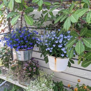 毎年2色、この吊り下げ鉢に植えているロベリア 花数が増えて涼しげになってきました 𖤣𖥧𖡼.𖤣𖥧 某インテリアショップで購入したパーゴラ (もう廃盤かも) 材質がスチール製なので、どうしても無機質になりがち どうしたら自然に馴染むか…と考えた結果 丈夫で良く育つ ヘンリー蔦を誘引 植え付けから3年が経過 今では夏の日差しを遮る、植物の休息ポイントが出来上がりました🌿 来年はここにクレマチスを追加したいなぁ 庭づくりの空想は止まりません ちなみに、ヘンリー蔦は落葉性 冬は再びスチール剥き出しになっちゃいます🍃🍃