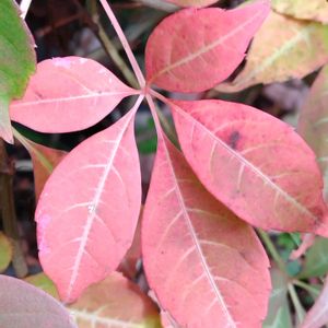葉っぱの美しい植物 斑入り野葡萄 ヘンリー蔦 斑入り野葡萄は 紅色の軸が目を惹く ^_^