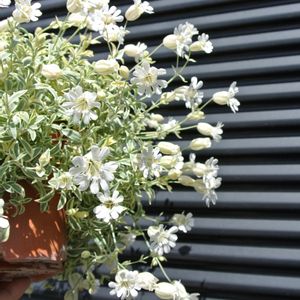 🍀シレネユニフローラ🍀 咲きました〜〜💖 待ってましたー、首が長〜くなっちゃいました😊 たった一個だけですけど… 雨にも負けず強風にも耐え頑張ってる一輪です😍 他にも、花芽?と思わしき所もあるので、これからたくさん咲いてくれたらいいなぁ✨