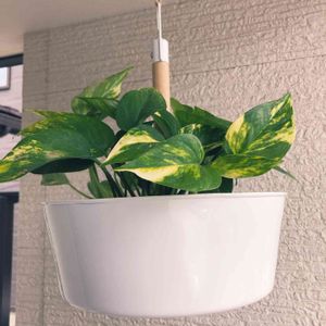 アイアンのハンギング鉢にポトスの苗を植えました🌱 垂れてきたらイィ感じになりますかね🙄 でも頭打ったらメッチャ痛そうです😵💫