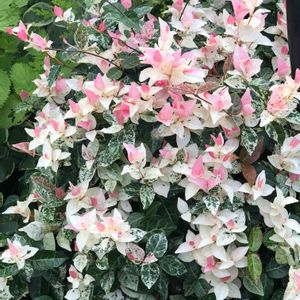 斑入りマサキ と名札付いてました🌿 新芽の季節だけトリカラーになるのかな? 葉もうちにあるのより大きいみたい👀 とっても綺麗でした(∩ˊᵕˋ∩)・*