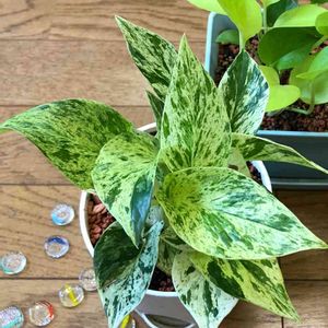 あまりに暑い😵💦ので、少し涼しそうな?斑入りの観葉植物を🍀🍀 ポトス エンジョイさん、普通のポトスに比べて丈夫で、冬越ししてくれて、ずっと元気です٩(^‿^)۶
