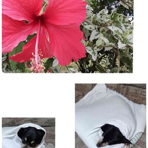 わんわん祭りへ参加のクロです😀 先日振り向いたらこうなってました。 排便困難からよく汚すので苦肉の策で使わなくなった主人の肌着をカバー代わりに。 眠たかったのと煩かったかな? 上手に潜り込み袖口から頭だしてました🤣 💠は斑入り🌿葉っぱが涼しげの🌺です。 🏷️わんわん祭り
