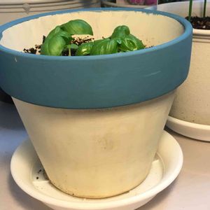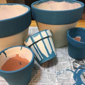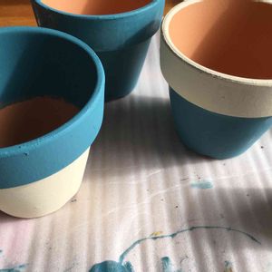 昨日、皆さんの投稿を読んでいて、鉢のリメイクに興味を持ちました。後、ダイソーに活用できるものか豊富だということも。 早速、ダイソーで素焼きの鉢を買ってきて、好きな色に塗ってみました。白い部分は乾燥するとクリーム色になる予定です。