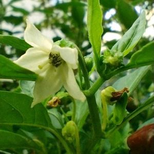 ししとう💚🤍💚 頑張って咲いてますが、暑すぎるのか🤣実が大きくならないで赤くなります〜🥵