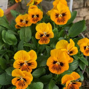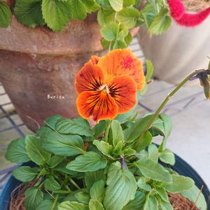 おはようございます😃 ビオラ オレンジタイガーアイ🍊🐯 エラそうな顔して咲いてますが その割には株が大きくなりません😅😟
