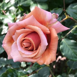 バラ ラテアート🧡🤎💗今年新苗で購入して秋に咲くのは初めてです🎊🙌今まで何度となく枯らして😨苗も中々手に入らなくて😔やっとの思いでゲットした薔薇😘軒下管理でこの秋蕾を三つ着けてくれました⤴️まだ苗も若いので大切に育てよう💪