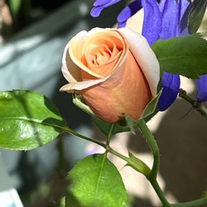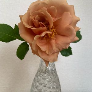 バラ ラテアート 昨夜は蕾だったのに、朝見ると咲いてたコ🌹 今日は午後から雨予報だから、ダメになる前に…と、切った途端に雨降ってきた☔️ 1番花はコレしか蕾なくて、冬剪定しなかったからかなぁ〜😞 黒星も出てきたから、ベニカの害虫&病気の粒剤買ってきて撒いてみよう🤔