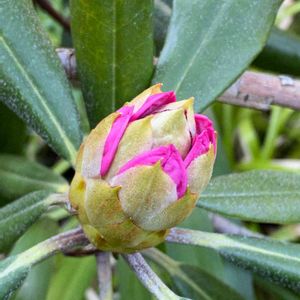 シャクナゲ って春の花ですよね😵 蕾が膨らんで明日にも開花するかも❓🤔 季節が わからない😱
