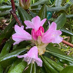 おはようございます☔️ 先日upしたシャクナゲ、今朝はこんなです🌸🌸🌸 蕾はピンクなのに花が開くとピンクの色が薄くなっています🤔 数年前に旅先で買いましたが、品種名などは分からなくなりました(^。^) 育て方が下手なのか、隔年でしか咲きません🤣