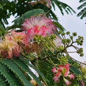 ご近所さんではネムの花が。。。 暑いさなか まだ綺麗に咲いています🩷 コンパクトな鉢植えで目線の高さでお花が見られます😊