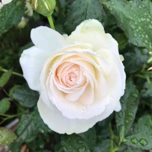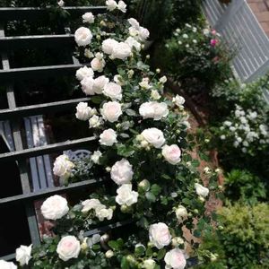 このところ☔️☔️☔️で白い花びらが緑がかって とっても綺麗です🎶 左側の太い枝が春の嵐🌀で終わりました。(虫にやられてたから仕方ない😌) そして、シュートが待ち構えていたように伸びてきました〜🌿 ブランピエールドゥロンサール🌹