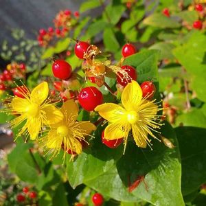 2020年6月5日午前中撮影 庭のヒペリカム、黄色いお花が咲き終わりどんどん赤い実が増えてきました💛❤️