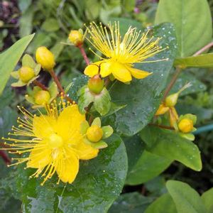 おはようございます😃 雨上がり ヒペリカムの実何とても赤くなってきました💕