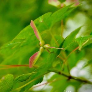 モミジ(紅葉) 新緑の紅葉の葉に 3つに重なる種子が可愛らしい (˘ω˘)𖥧 𖧧