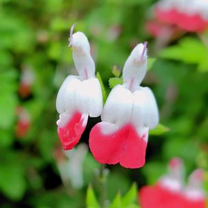 我が家のチェリーセイジたちが可愛く咲いています(*´∀`*)♪ 白の先端に少し赤い縁取り… 🤍🤍❤今年お迎え🤗 赤いチェリーセイジも沢山咲き出しました🥳✌❤❤❤