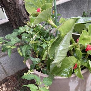 ベゴニア ルシエルさん 8/9に到着 8/16に植えて🌿 更に10日後💦 ①大鉢にジュズサンゴ さんと同居している方は めっちゃ元気 葉っぱも開いてお花も元気✨ ②だけどおひとり様の方は 葉っぱもくるんと丸まったまま💦 今ひとつ元気ないように見える💧 最初に置いていたところは 玄関前のコンクリートの上だったので 庭先の 大鉢が置いてあるところの近くへ移動してみたけど なんか今ひとつ。。 暑いせいかなー 。。 寄せ植えっこの方が 暑過ぎないのかな。。 水やりすぎないように 気をつけます💧