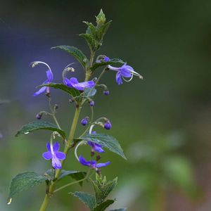 カリガネソウ(雁金草) シソ科カリガネソウ属の多年草 別名 ホカケソウ(帆掛け草) 分布 北海道・本州・四国・九州 1枚目と2枚目は、 登山口から少し登った辺りの谷川近くで、群生していたカリガネソウです。 どこにカメラ(スマホ)を向けて撮ったらいいのか、迷ってしまうくらい、ゴチャゴチャ、花が咲いていました😅 (2024.10.6撮影) 3枚目は、 花友さんからいただいた種子をまいて育ったカリガネソウです。 5月中頃に、種子を蒔いて、 今、盛んに花が咲き始めたところです。 ちょっと触れたり、水やりで、葉っぱに水がかかっただけで、独特の匂いがしますが😅、 青紫色の花と、丸い蕾が、かわいいです😅v