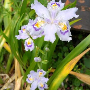おはようございます😊 一日中☔だと思っていましたが、予報が☁️⇒🌧️⇒☁️に変わったようで、今は☔が止んでいます😄 ☁️でも25℃になる予報で、蒸し暑そうですね😓 今日のお花シヤガ❇️🤍💟🤍❇️ 可愛らしくて大好きなお花です💕 去年中庭から移植したので、花数はグッと減ってしまったのですが、今年も咲いてくれて嬉しいです✨🤗