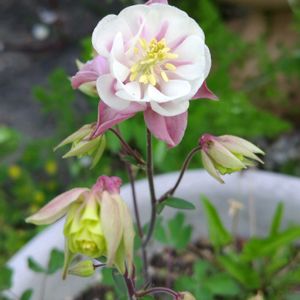 ①オダマキが可愛く咲いています🩷✨ ②3ヶ月程前にお迎えしたスズランエリカ❇️💮🌸💮❇️ 白いお花がピンクがかってさらにかわいくなって来ました💕🤗 ③こちらも3ヶ月前にお迎えした金魚草スナップドラゴン💛💛 モリモリになっています😄