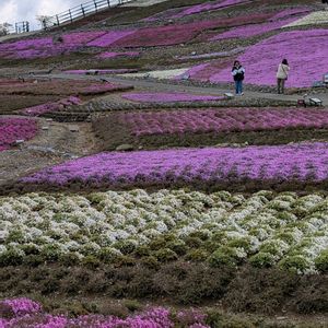 「香嵐渓」から「茶臼山」へ【青モミジ🌿】から【シバザクラ🌸】へ、、、 まだ、時期が早くて三分咲きだそうでした。 しかもリフトで山頂に登ったら🥶寒くて🥶寒くて🥶 3月頃の気候に、みんなガタガタ😰 1ヶ所だけマーガレット💮が咲いてて可愛いくて、ホッとしました😮💨