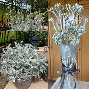 シロタエギクはお花を咲かせてしまうと株が弱ると知って切ろう切ろうと思いながらやっと💦なんだか勿体ない気がして何本か挿し穂にした後(成功率高いですよね♪)切ったお花はむかぁ〜し買ったIKEAの花瓶へ… 合わせたリボンは今日娘ちゃんから届いた出張土産の紅茶のパッケージを包んでいたもの🎀デンマークだったのでロイコペのカップ&ソーサーもいただきました♡(お紅茶も立派なリーフですね〜🌱) それにしてもシルバーリーフはまるで合成みたいにキレイに写る✨