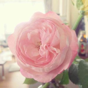 終わった夏休みの宿題をまとめるはずなのに、なぜかどんどん散らかす娘。 そんな汚いテーブルが向こうにうっすら見えるけど、バラの綺麗さは変わらない、ってことで・・・(^◇^;) シャルドネちゃんは、切り花にしても結構持ちます💕