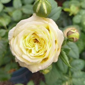 時は5月(,,• •,,) 大好きなパティオローズの注文で、小川 宏氏とお話ししていたところ… 小川さんが『バラ好きなの?』と聞くので 『はい好きです』と答えました 『じゃあ、ヴァージンフラワーの抜き苗?何本か贈るから育ててごらんなさい』・・・ Σ(,,ºΔº,,*)えぇっ??? っと言うことで、いただいた苗をポットに植え とにかく咲かすのよね?って感じで、何とか咲き揃えました とりあえずこの中から5つほど鉢あげ? …で、これからはどうするのかな σ(^_^;)?