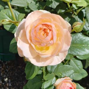こんばんは 今日は晴れの愛知県 風が強かったので、暑さもほんの少~~しだけ緩和されたようなそうでもないような… ドッチヤネン(•'Д'• ۶)۶ 雨が続くと太陽が… 晴れが続くと雨が恋しくなりますね~~ パティオローズ【ラ・ボンボニエー】🌹 実はリベンジ株(新苗) 枝枯れで🌟になってしまってので この🌹の別名【キャラメラ】 本当に素敵なキャラメル色になる予定です.。.:*♡ ( *´艸`)フフフ