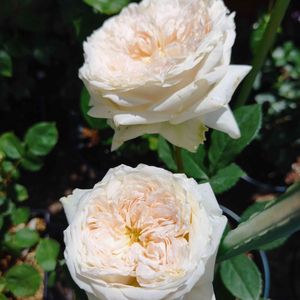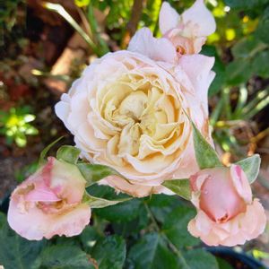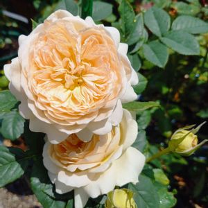 こんばんは 今日は雨上がり、曇り時々晴れの愛知県 おちびさんのお熱は、昨日のうちにひきました が念のため今日は園もデイもお休みさせて、おうちで過ごす事に… 娘ちゃんが自分も学校お休みしたい感じを醸し出してましたが、学校が嫌いな訳ではないので頑張って行ってもらいました 今日もお庭へはほんの少しの間だけしか出られませんでした 曇ってて良かった 水切れの心配はなさそう 大好きなパティオローズの新品種のひとつ 【月のうさぎ】🌹 本当はもう少しコロンとした感じなのだけれど、新苗でお顔が見たくて咲かせちゃいました *(〃∇〃人)*:🎵