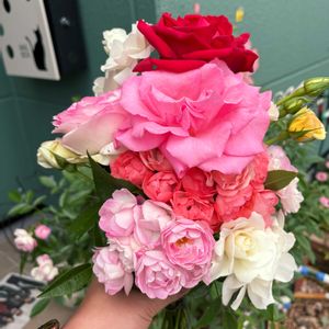 妹がピクルスをくれたので、お礼に玄関前のバラで花束を妹にプレゼント💐 めっちゃ喜んでくれた! 嬉しいね😊